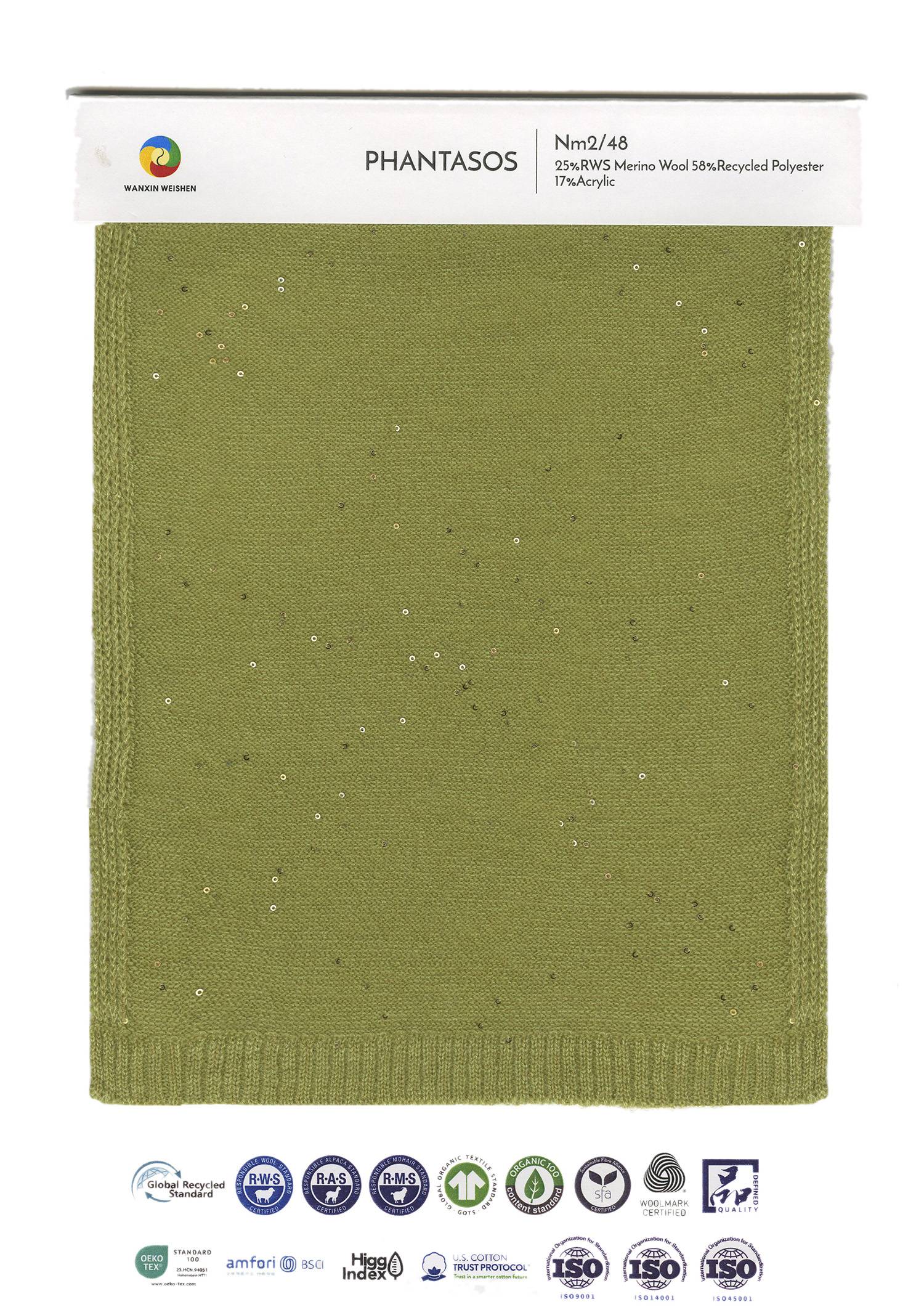 成份:25%RWS美利奴羊毛 58%再生滌綸 17%腈綸