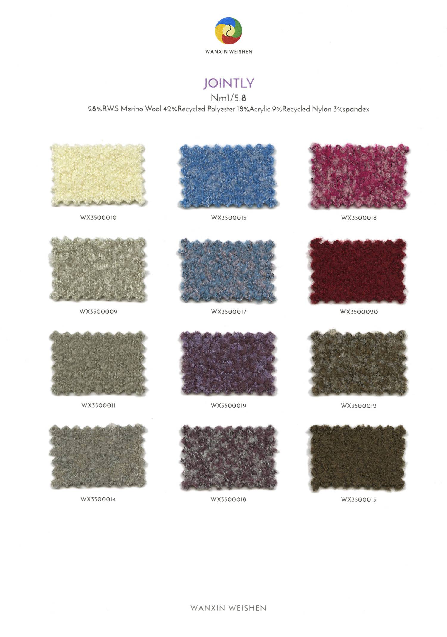成份:28%RWS美利奴羊毛? 42%再生滌綸 18%腈綸? 9%再生尼龍 3%氨綸